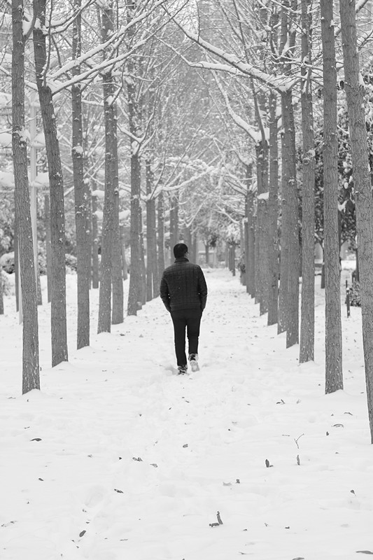 你在茫茫的雪海里踽踽獨行,時而抬頭看天,時而低頭看雪,你在找一個焦點,讓你不至于迷失了方向。